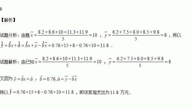 为了解某社区居民的家庭年收入所年支出的关系,随机调查了该社区5户家庭,得到如下统计数据表: