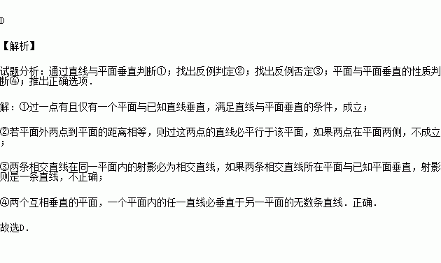 ①过一点有且仅有一个平面与已知直线垂直;