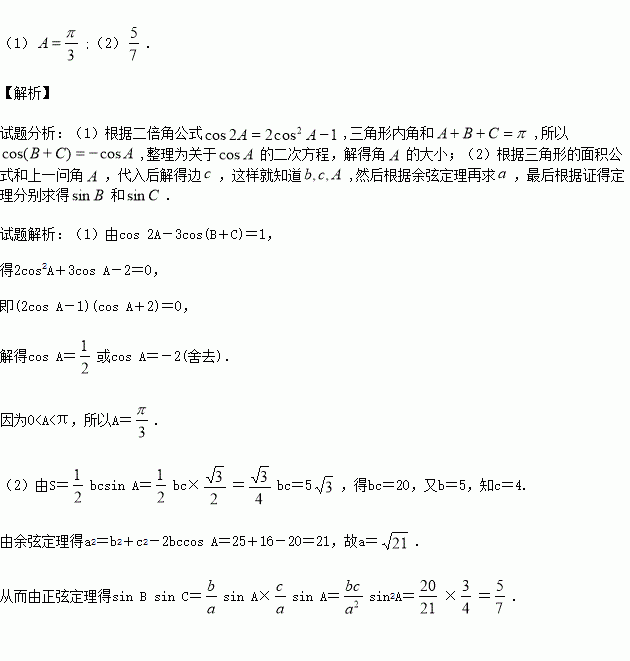 在△ABC中,角A,B,C对应的边分别是a,b,c,若cos 2A-3cos(B+C)=1.