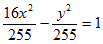 已知双曲线的中心在原点,以坐标轴为对称轴,且与圆相交于点A(4 , -1),若圆在点A的切线与双曲线的渐近线平行,求此双曲线的方程。