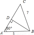 解答:解:作AC边上的高BD,因为在△ABC中,已知A=60°,AB=5,BC=7,