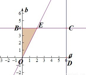 2的交点,然后利用交点在第一象限,得出a,b的关系式,然后利用几何概型的公式求概率.
