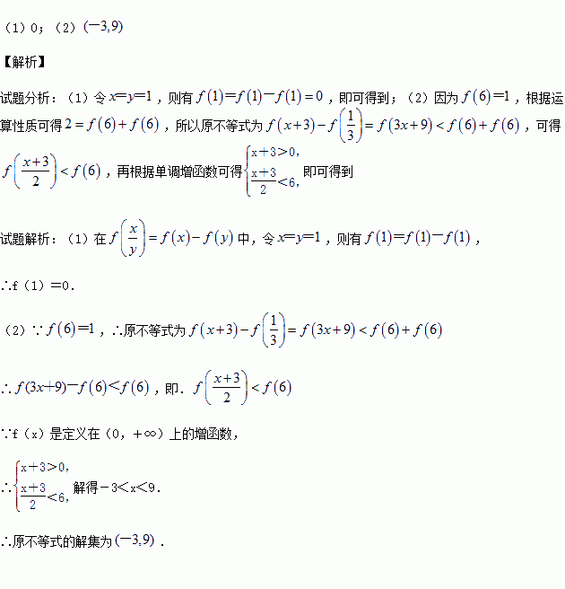(2)若f(6)=1,解不等式f(x+3)-f