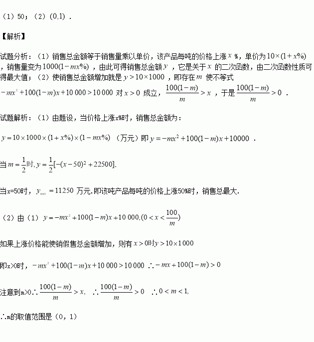 时,该产品每吨的价格上涨百分之几,可使销售的总金额最大?