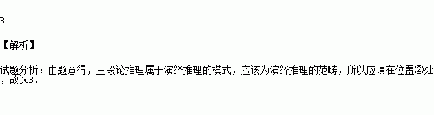 如图是人教A版教材选修1-2第二章“推理与证明”的知识结构图(部分),那么知识点“三段论”应该填在图中( )