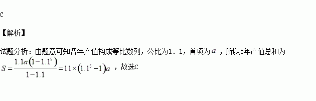 某工厂去年产值为a,计划从今年起的今后5年内每年比上年产值增加10%,则从今年起到第5年,这个厂的总产值为( )
