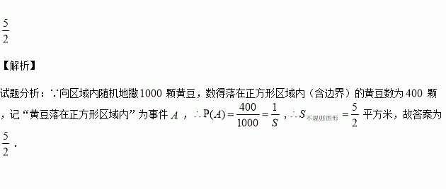 如图,一不规则区域内,有一边长为1米的正方形,向区域内随机地撒1000颗黄豆,数得落在正方形区域内(含边界)的黄豆数400颗,以此实验数据为依据可以估计出该不规则图形的面积为________平方米.(用分数作答)