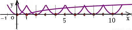 再结合两个函数的草图,可得两图象的交点一共有10个,
