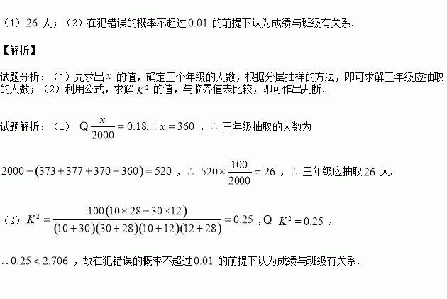 名,各年级男、女生人数如下表. 已知在全校学生中随机抽取
