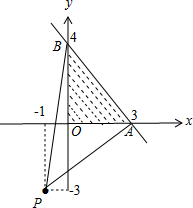 由${k}_{PA}=\frac{-3-0}{-1-3}=\frac{3}{4}$,${k}_{PB}=\frac{-3-4}{-1-0}=7$.