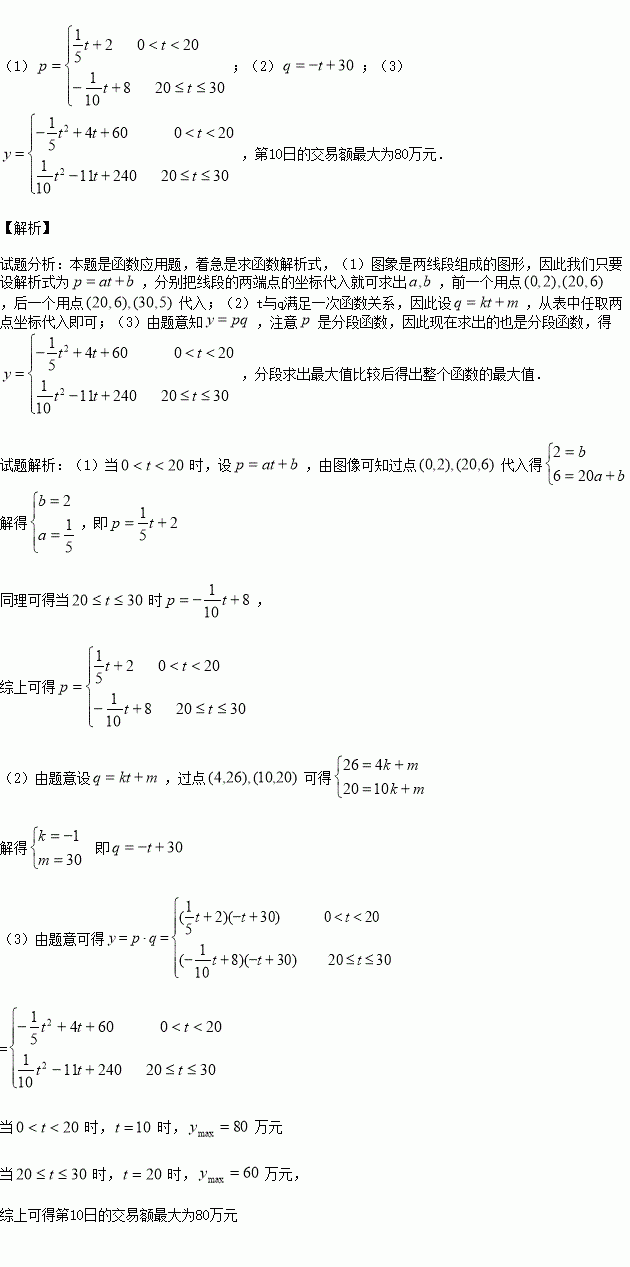 的函数关系式,并求出这30天中第几日交易额最大,最大值为多少?