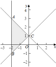 解:不等式组等价为$\left\{\begin{array}{l}{x-y+1≥0}\\{x+y-1≥0}\\{-2≤x≤0}\end{array}\right.$或$\left\{\begin{array}{l}{x-y+1≤0}\\{x+y-1≤0}\\{-2≤x≤0}\end{array}\right.$,