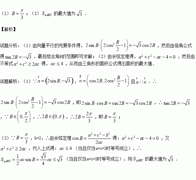 (2)如果b=2,求△ABC的面积的最大值.