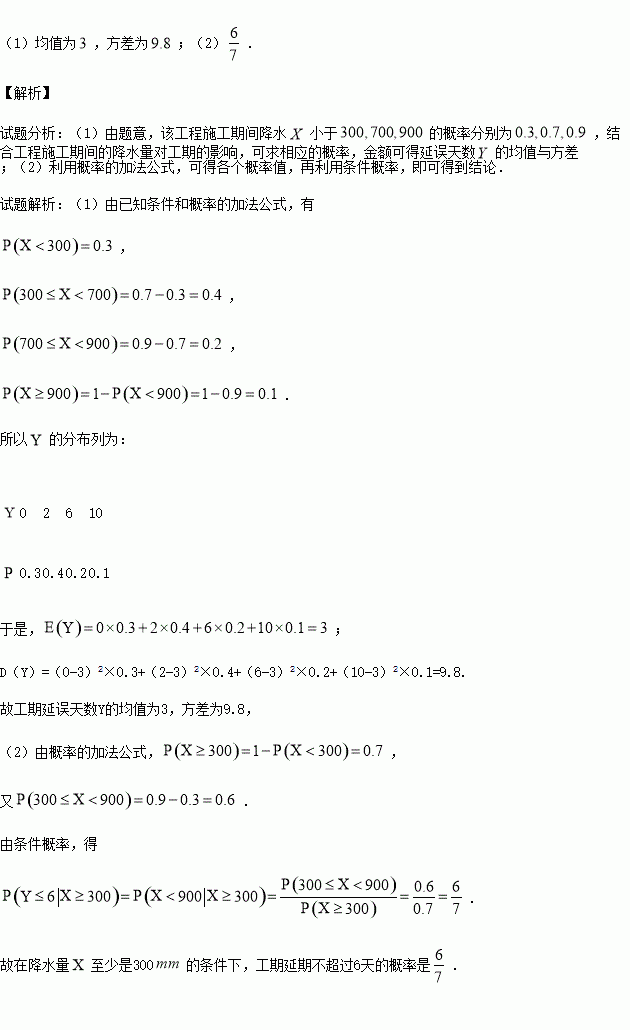 小于300,700,900的概率分别为0.3,0.7,0.9,求:
