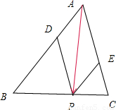 【答案】分析:在AB上取一点D,使得,在AC上取一点E,使得,由向量的平行四边形法则可得P的位置,由图形可得范围.