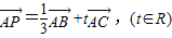 设P是△ABC所在平面上的一点,,使P落在△ABC内部(不含边界)的t的取值范围是