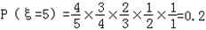 一个袋中有1个白球和4个黑球,每次从中任取一个球,每次所取的球放回,直到取得白球为止,但摸球次数不超过5次,求取球次数的分布列