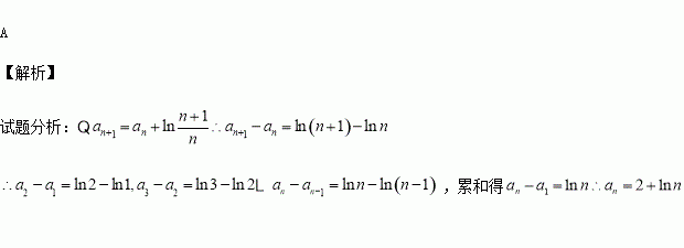 在数列{an}中,a1=2,an+1=an+ln(1+