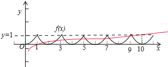 当x>10时,y=lgx>1,此时函数y=lgx与f(x)无交点,