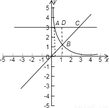 【答案】分析:由题意利用定积分的几何意义知,欲求由曲线xy=1,直线y=x,y=3所围成的平面图形的面积曲边梯形ABD的面积与直角三角形BCD的面积,再计算定积分即可求得.