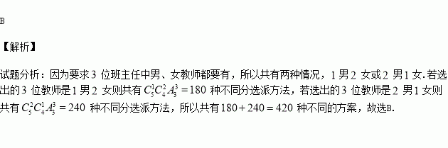 位班主任中男、女教师都要有,则不同的选派方案共有( )
