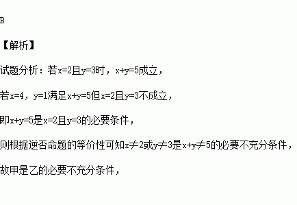 若命题甲:x≠2或y≠3;命题乙:x+y≠5,则( )