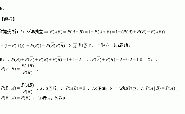 D.若A和B独立,则必有![]()