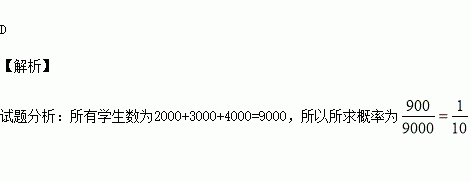 某地区高中分三类,A类学校共有学生2000人,B类学校共有学生3000人,C类学校共有学生4000人,若采取分层抽样的方法抽取900人,则A类学校中的学生甲被抽到的概率为( )