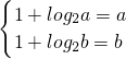 设函数f(x)=1+log2x的定义域和值域都是[a,b](b>a>0),则a+b=________.
