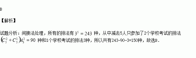 高校.若这三所高校中每个学校都至少有1名同学报考,那么这5名同学不同的报考方法种数共有( )