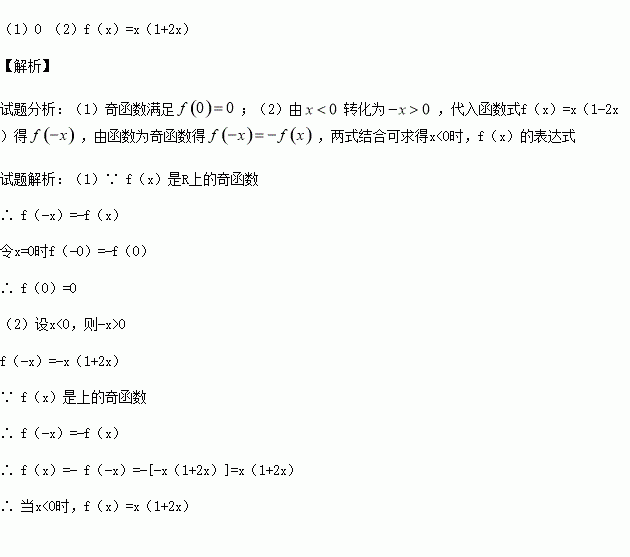 (本小题满分12分)已知y=f(x)是定义在R上的奇函数,当x>0时,f(x)=x(1-2x)