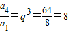 在等比数列{an}中,a1=8,a4=64,,则公比q为( )