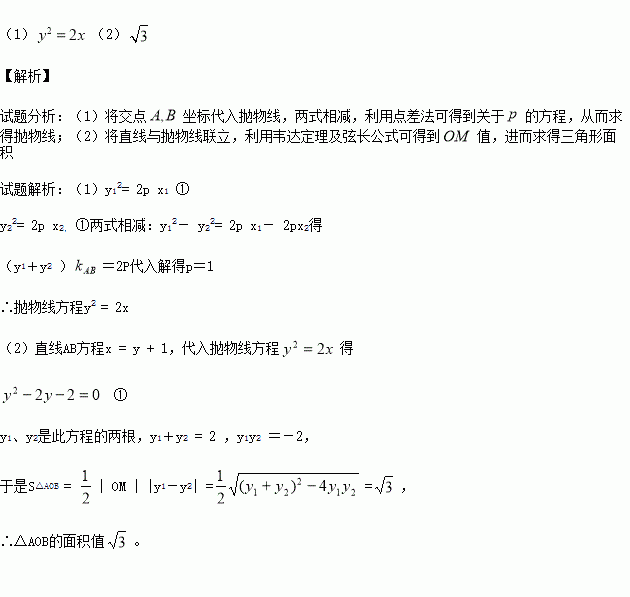 (1)求抛物线方程;(2)求△AOB的面积