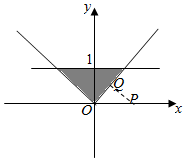 解:由实数x,y满足:|x|≤y≤1,可得可行域为: