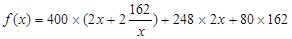 某造纸厂拟建一座平面图形为矩形且面积为162平方米的三级污水处理池,池的深度一定(平面图如图所示),如果池四周围墙建造单价为400元/米,中间两道隔墙建造单价为248元/米,池底建造单价为80元/米2,水池所有墙的厚度忽略不计.
