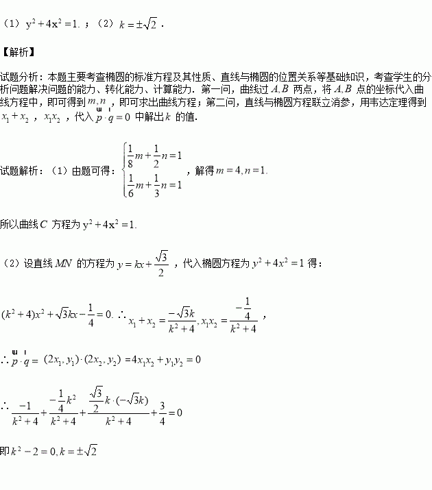 (Ⅱ)设M(x1,y1),N(x2,y2)是曲线C上两点,向量p=(