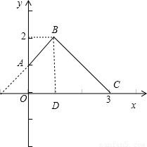 令x≥0,y≥0,方程化为 y=2-|x|,表示线段AB 和BC,如图所示:
