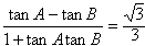 在锐角△ABC中,已知角A、B、C所对的边分别为a、b、c,且tanA-tanB=(1+tanAtanB)。