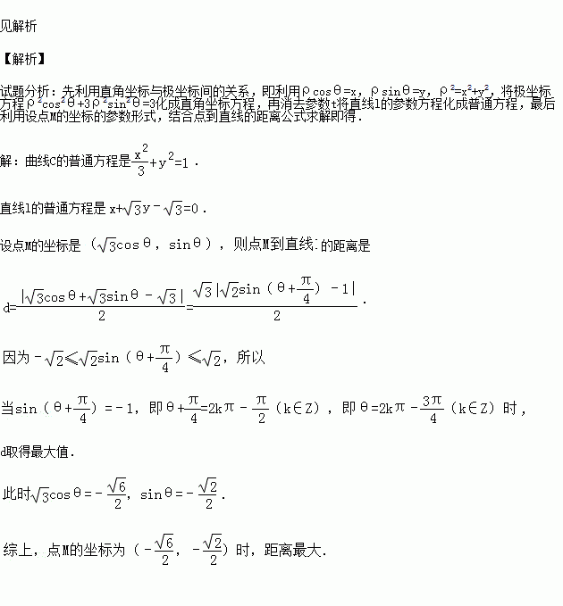 .试在曲线C上求一点M,使它到直线l的距离最大.