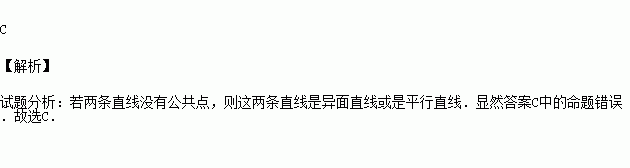 C.若两条直线没有公共点,则这两条直线是异面直线