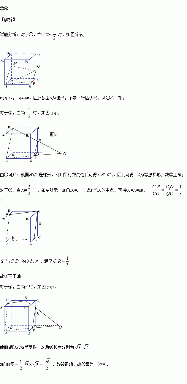 A1B1C1D1的棱长为1,P为BC的中点,Q为线段CC1上的动点,过点A,P,Q的平面截该正方体所得的截面记为S。则下列命题正确的是 (写出所有正确命题的编号).