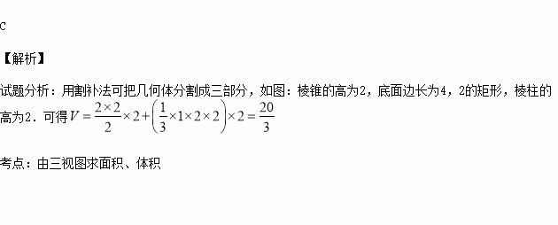 矩形,其正(主)视图和侧(左)视图如图,其中正(主)视图为等腰梯形,侧(左)视图为等腰三角形,则该多面体的体积为 ( )
