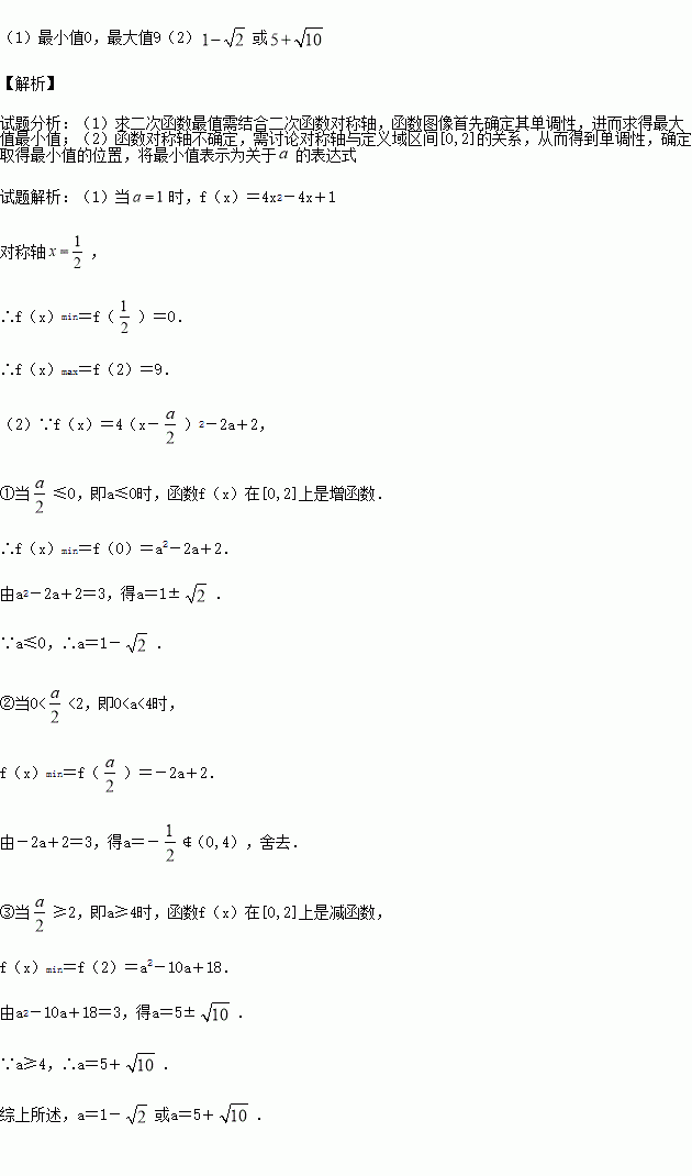 (本小题满分12分)函数f(x)=4x2-4ax+a2-2a+2,其中