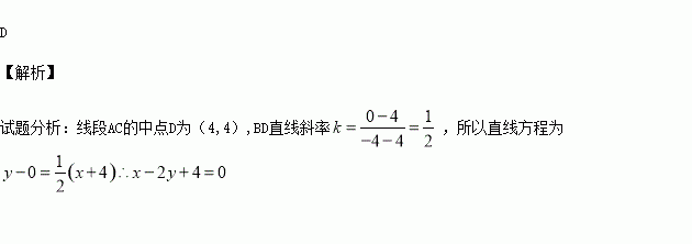A、2x–y+4=0 B、x+2y+4=0