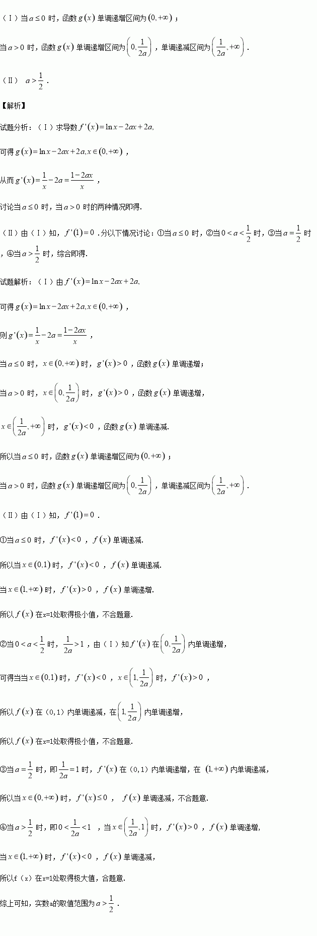 (Ⅱ)已知f(x)在x=1处取得极大值.求实数a的取值范围.