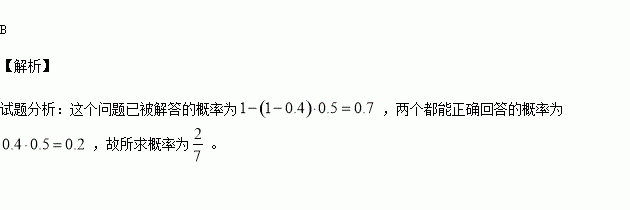 老师提出的一个关于引力波的问题需要甲、乙两位同学回答,已知甲、乙两位同学能正确回答该问题的概率分别为0.4与0.5,在这个问题已被解答的条件下,甲乙两位同学都能正确回答该问题的概率为( )
