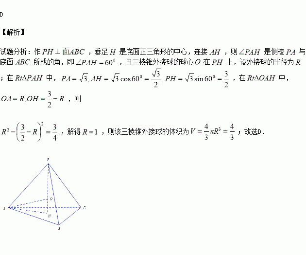 已知某几何体的三视图的侧视图是一个正三角形,如图所示,则该几何体的体积等于( )