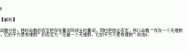 命题“存在一个无理数,它的平方是有理数”的否定是( )
