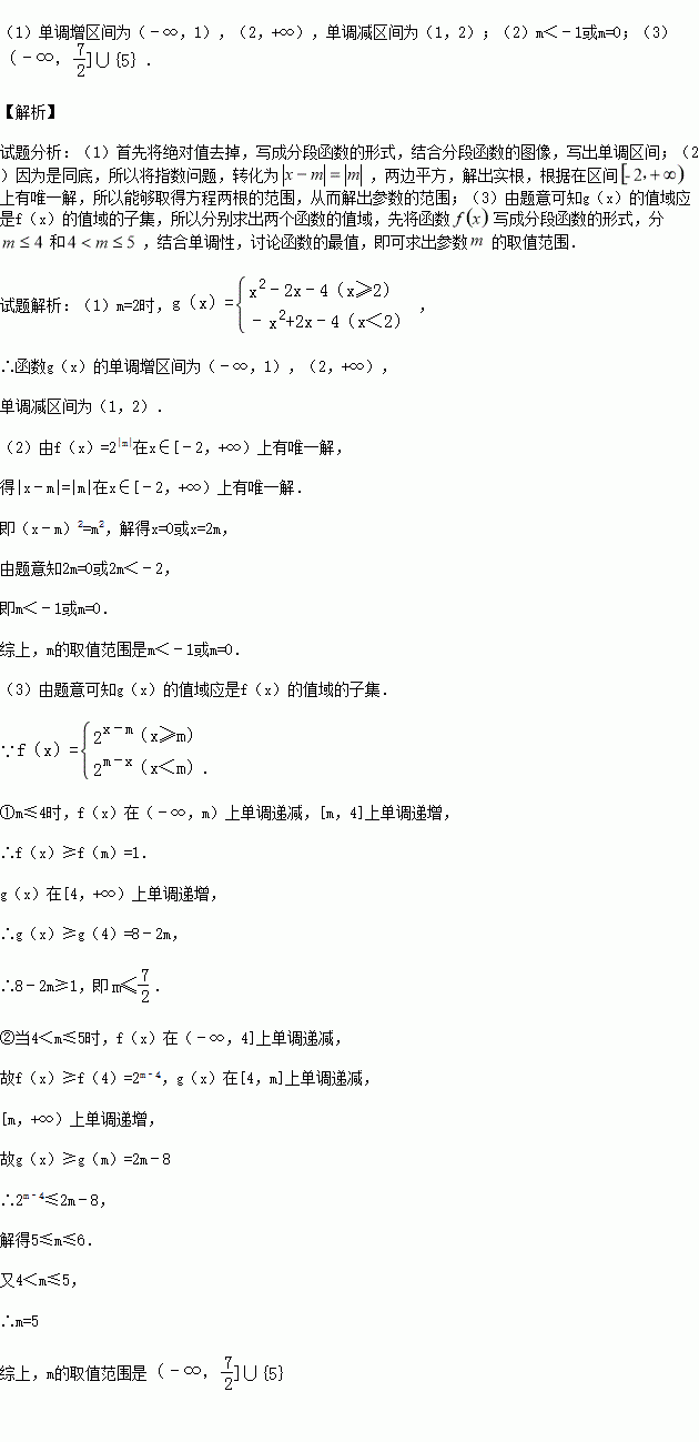 (1)若m=2,写出函数g(x)的单调区间(无需证明);
