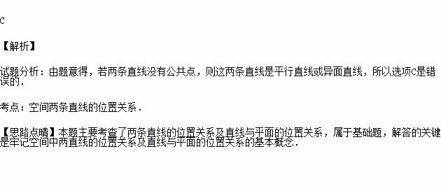 C.若两条直线没有公共点,则这两条直线是异面直线